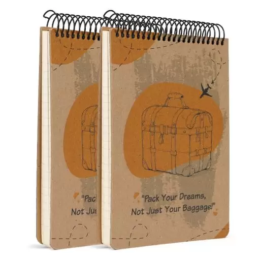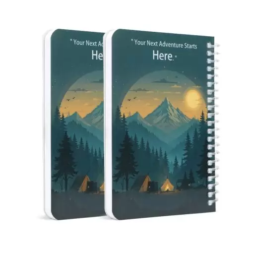 مدلی کوچکتر، جمعوجورتر و بسیار کاربردی این دفتر با جلد لمینیتشده و طراحی کمپینگ، برای یادداشتهای روزانه، سفرنامه یا حتی دفتر جیب ایدهآل است. سبک، قابل حمل و با کیفیت چاپ بالا.